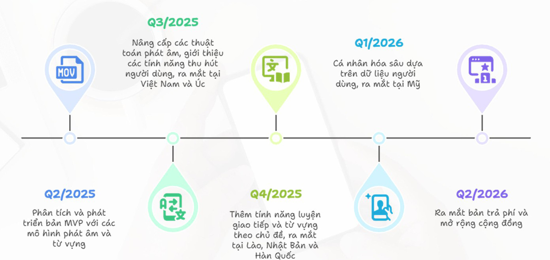 Tiến sỹ Phạm Vũ Minh Tú cũng cho hay, VieAI đã chính thức ra mắt tại Việt Nam và Australia trong quý III/2025. Theo lộ trình, trong quý IV/2025, nhóm phát triển sẽ bổ sung thêm tính năng luyện giao tiếp, từ vựng theo chủ đề. Ứng dụng hỗ trợ học tiếng Việt VieAI sẽ tiếp tục được giới thiệu rộng rãi tới cộng đồng người Việt Nam và bạn bè quốc tế tại Lào, Nhật Bản, Hàn Quốc và Hoa Kỳ trong thời gian tới.